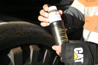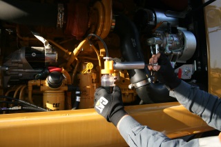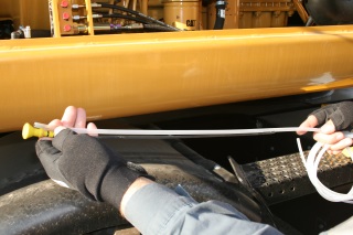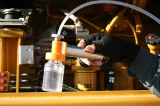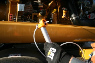 Before sampling, exercise the machine and implements to ensure the oil reaches operating temperature. This provides a S•O•S sample that is representative of the oil in the compartment. Turn the engine off. Measure and cut new tubing to the length of the dipstick. If the compartment you are sampling does not have a dipstick, cut the tubing so that it reaches about halfway into the fluid depth.